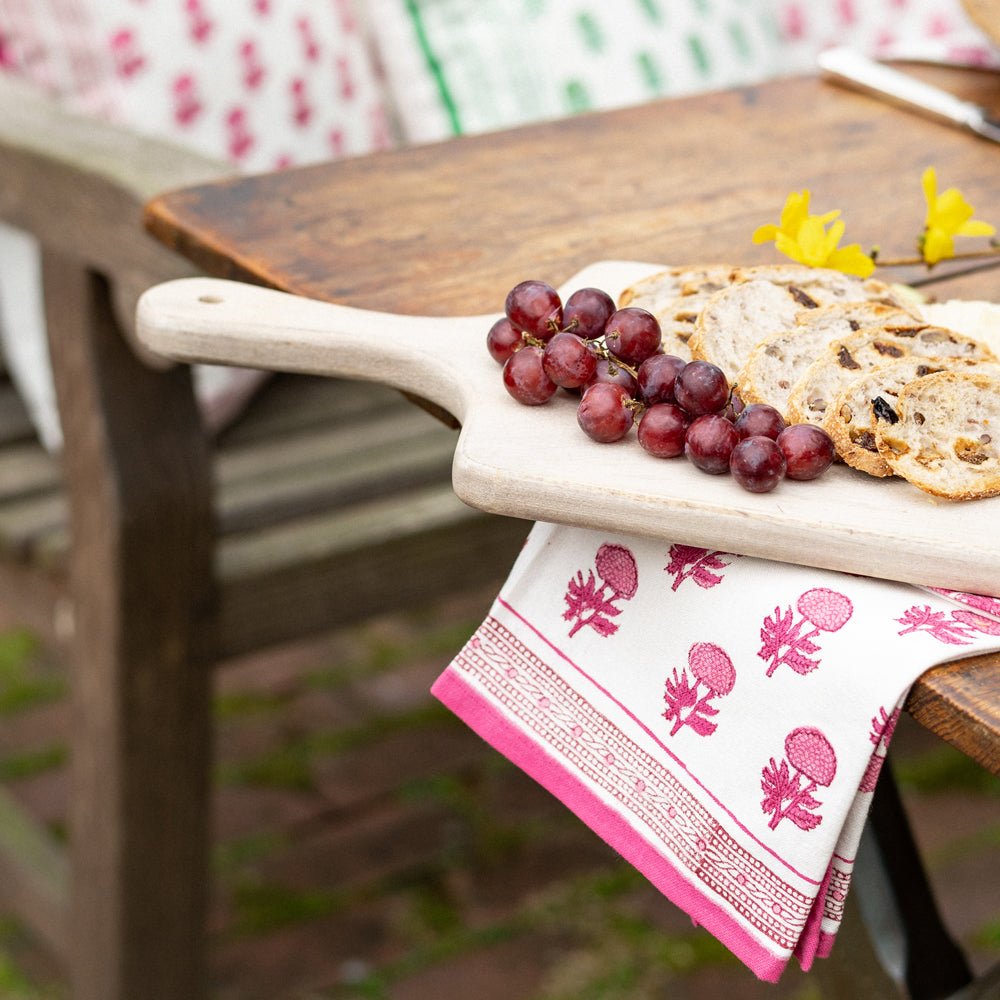 Our latest exclusive rose pink and white print is refreshing yet cool. traditional and exotic, all at the same time. Cheer up your kitchen with the bright pink and white updated Indian motif tea towels, and pair with matching apron and oven mitt set. A perfect gift for your mom, best friend, neighbor...oh, and for you!