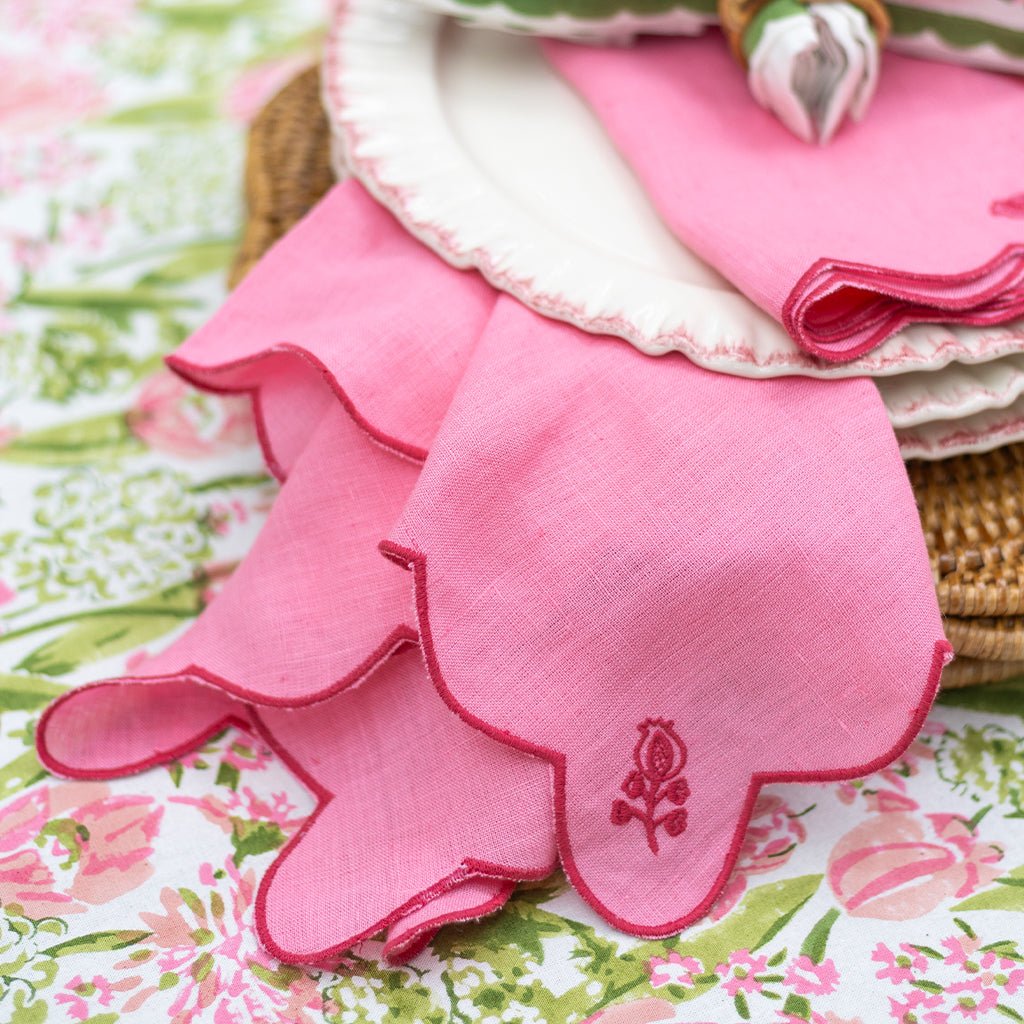 Scalloped Buti Wild Rose Linen Napkin | Set of 4
