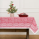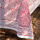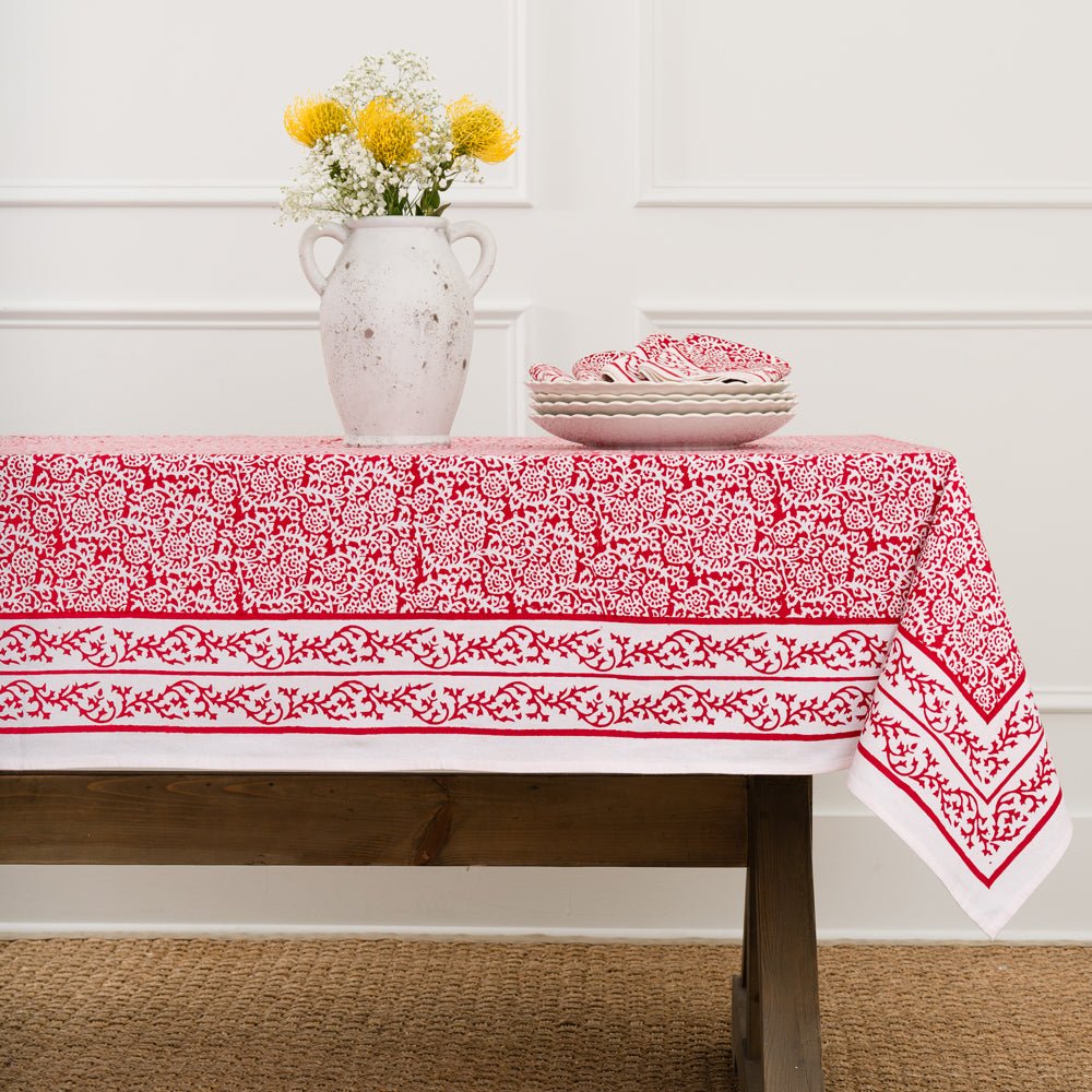 This traditional classic red and white hand block printed Tapestry Deep Red Tablecloth was crafted to represent the narratives shared over meals. It highlights the beauty in small moments and weaves together the story of your entertainment.