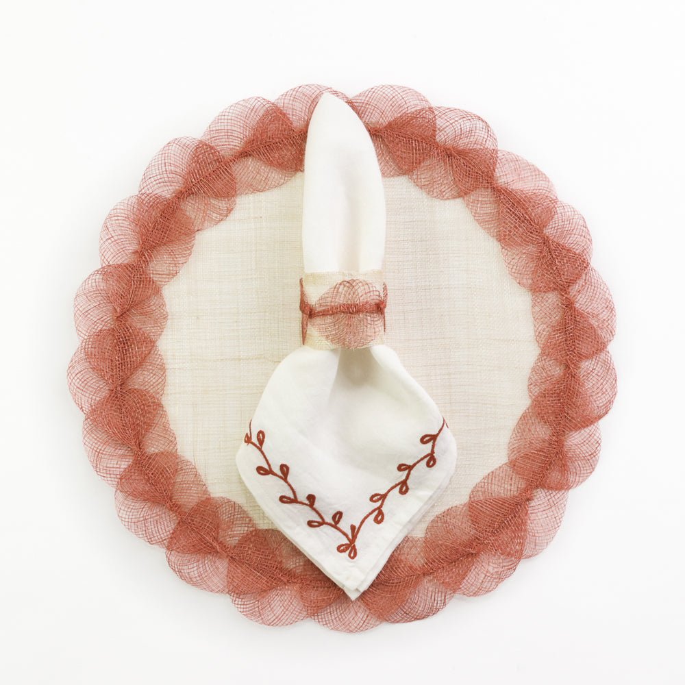 Twig & Bud Coral Embroidered Linen Napkin | Set of 4
